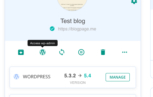 To do that, on your BlogVault account, go to the site details page and click on the WordPress icon.