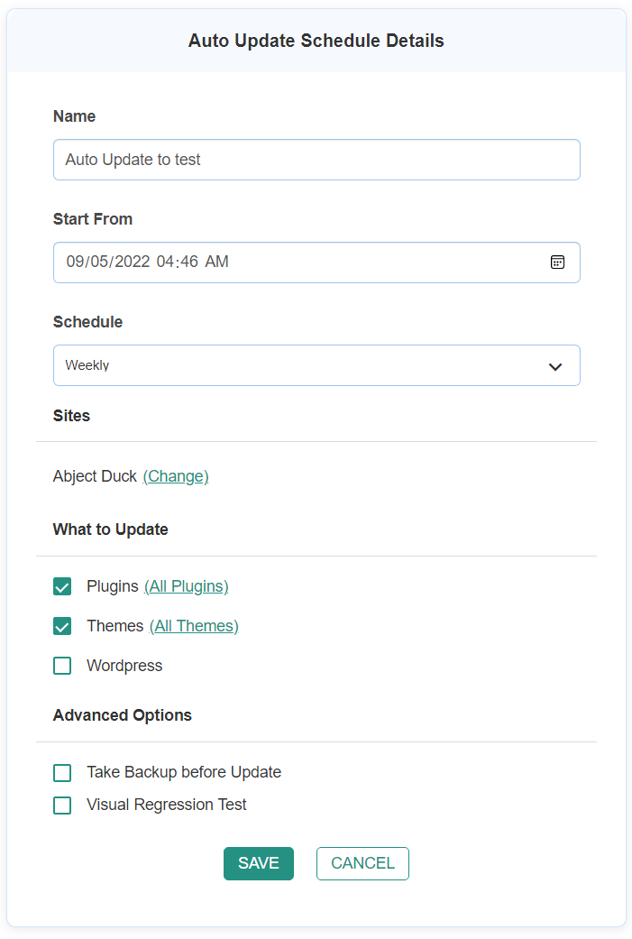 Here, you can edit the existing scheduled update, then click on Save to save it.