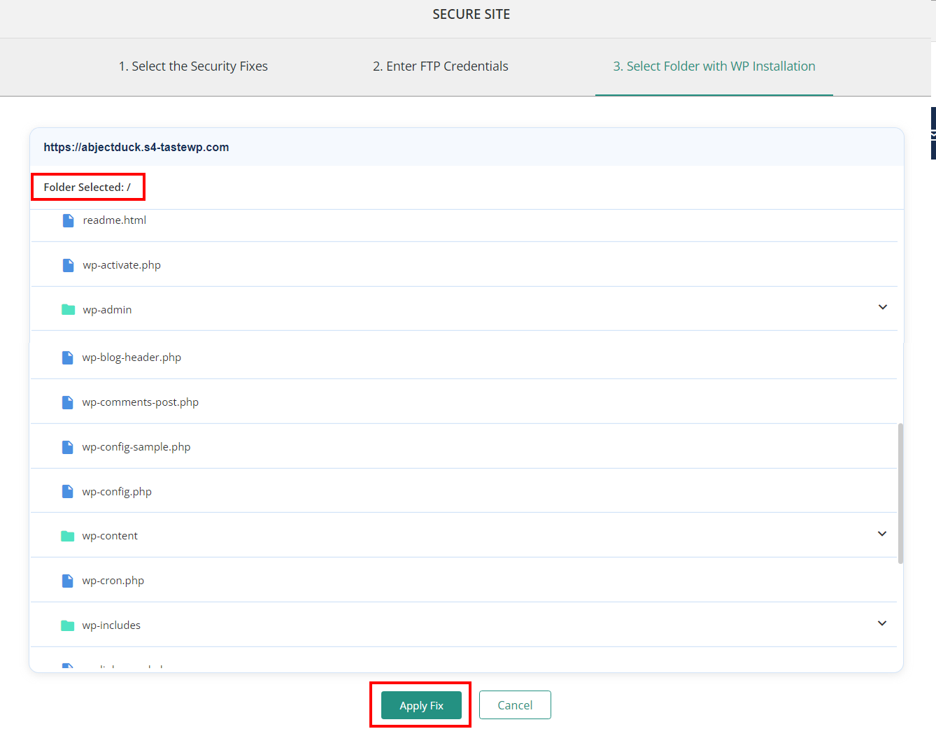 Select Folder and click on Apply Fix.