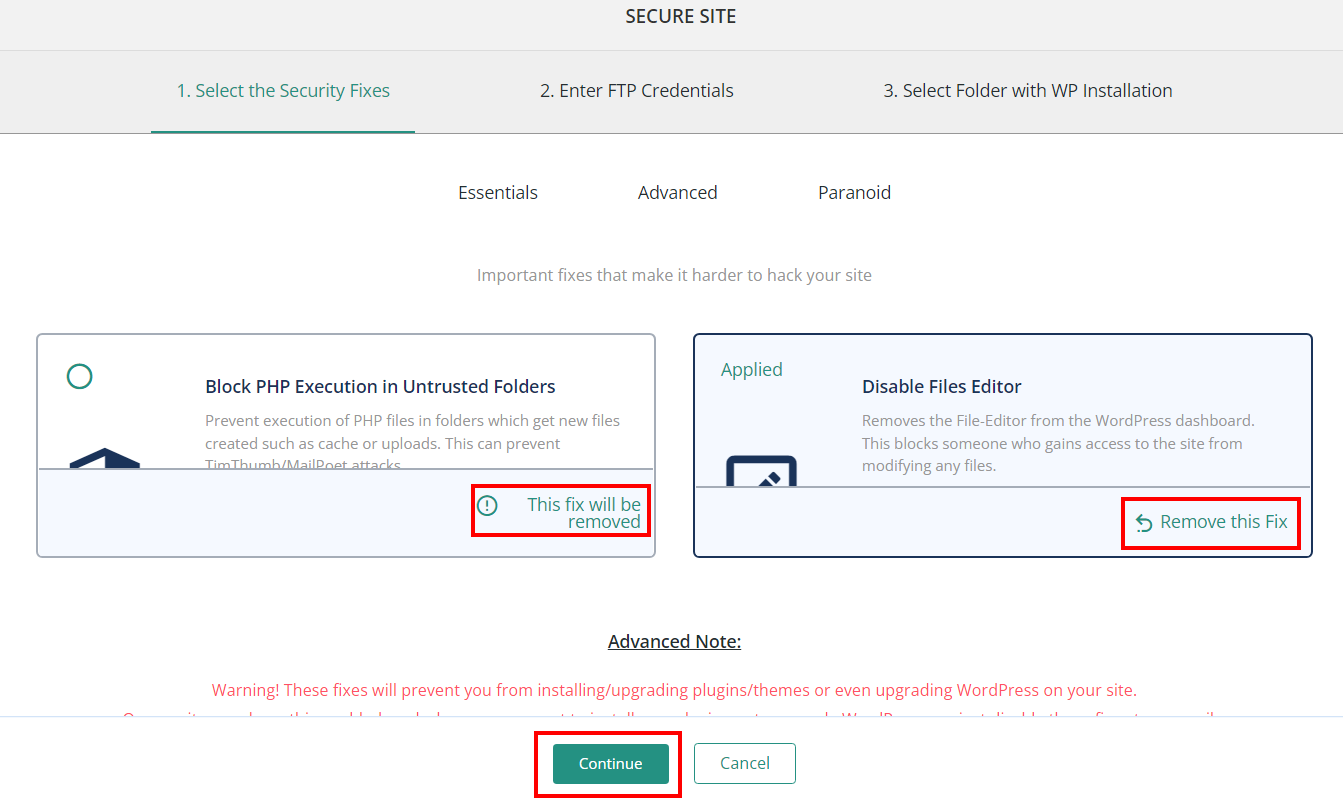 Here, click on Remove This Fix for the Fix you want to remove and the click Continue button.