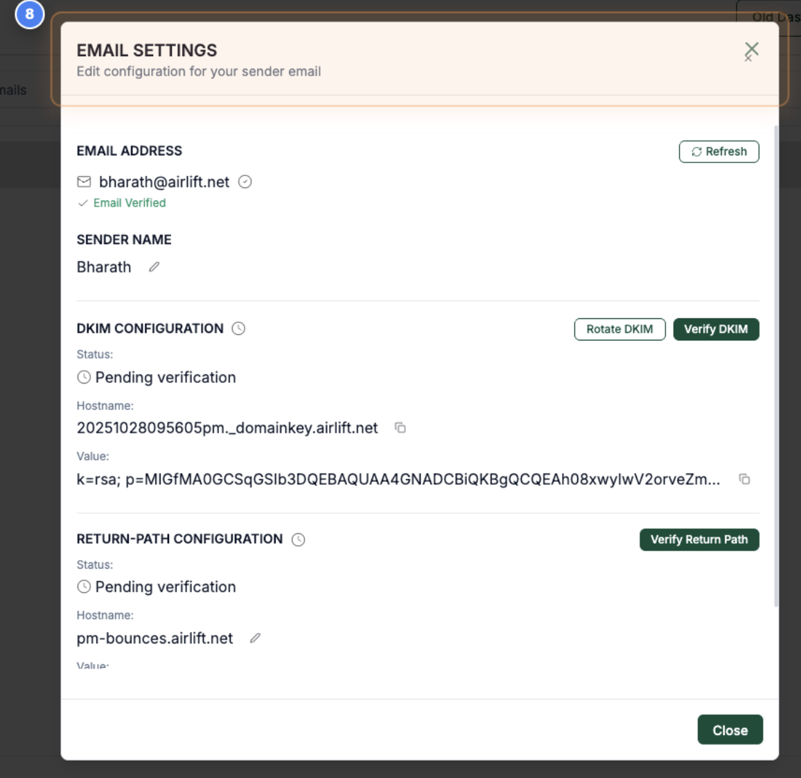We've enhanced our Outbound Email feature with advanced domain verification. Emails can now bear your unique domain signature through DKIM and return path configurations, significantly improving trust and deliverability. Your workflow for email verification and domain setup is now more streamlined and secure.