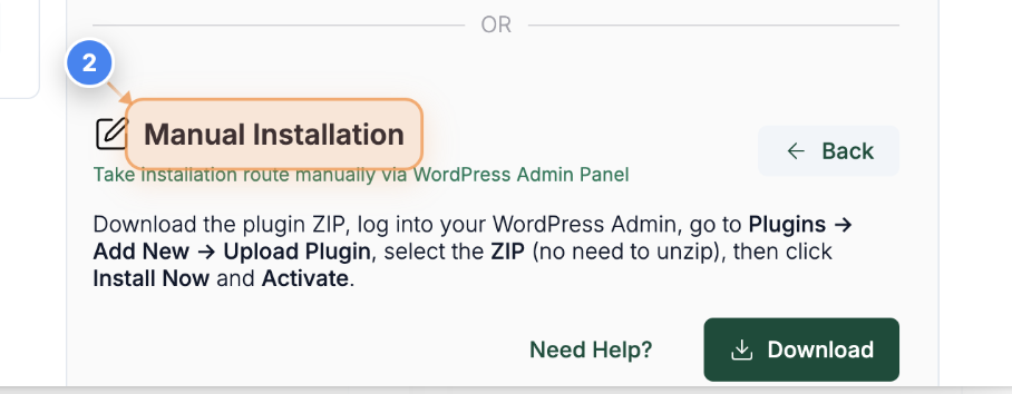Note: This allows you to manually upload the plugin file to your WordPress site.