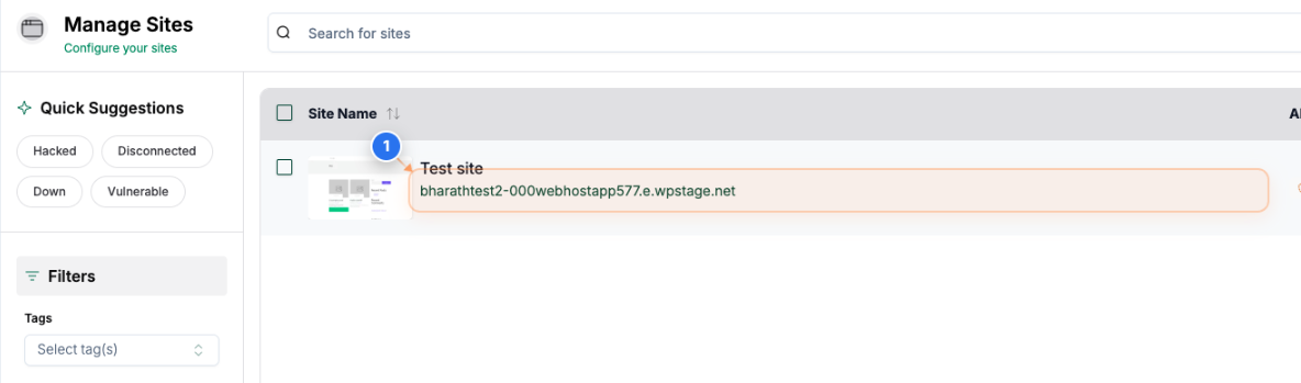 Click on your site name in the Sites page to open its management dashboard.