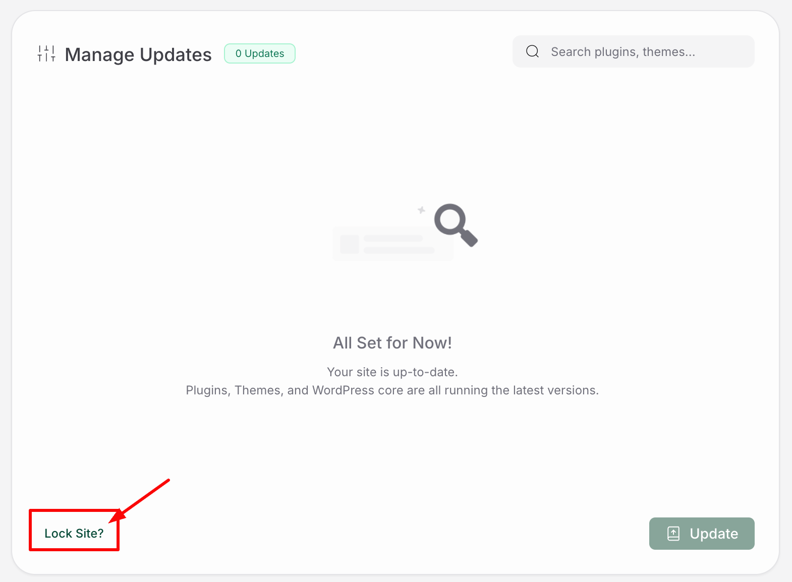 Note: This lock feature comes under Website Management. This feature enables you to lock a website from Plugins, Themes & WordPress Core updates.  You can also lock a particular Plugin or theme across your website(s) to not update, instead of locking one website in the next steps.  This lock feature only applies to the MalCare dashboard and not to the Website. You will still be able to update the plugins via WP-Admin. There will be no such restrictions added to your WordPress installation.